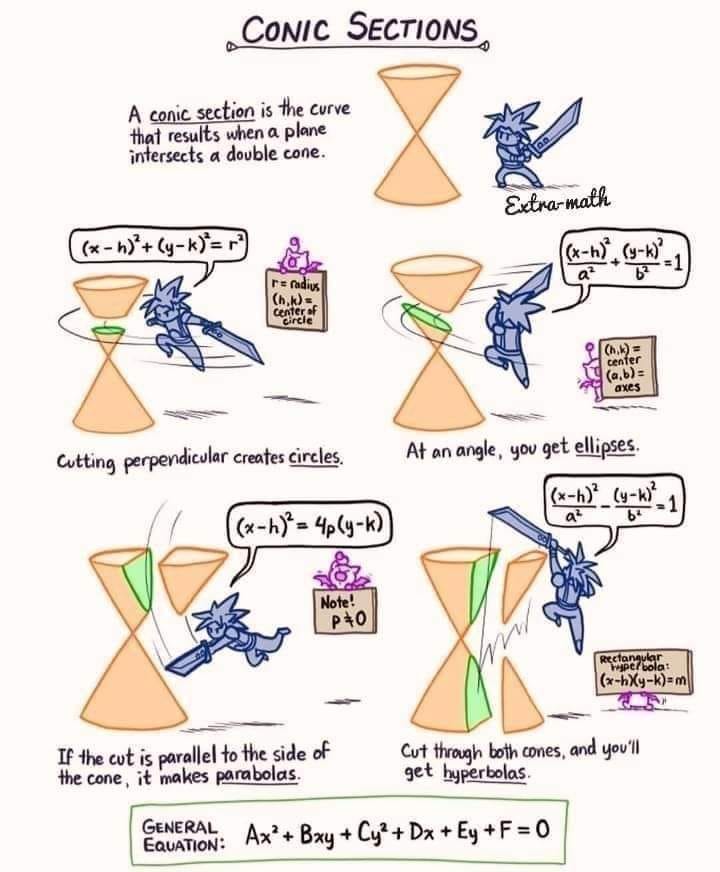 - Ellips, parabel, hyperbel — se kägelsnitt